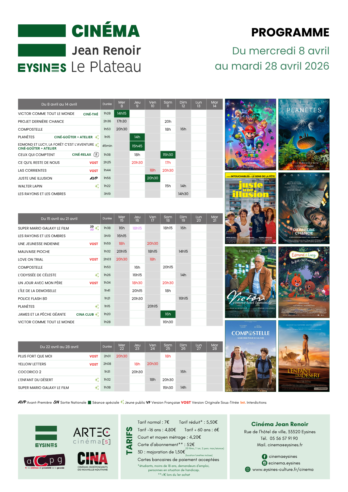 - Plus de 60 ans et ciné-thé : 6€