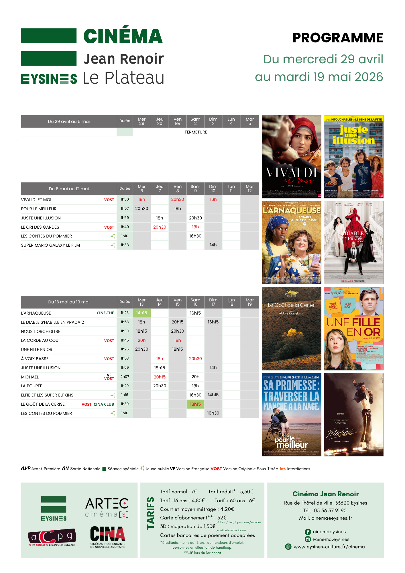 Ouverture des portes 15 min avant le début de la séance.